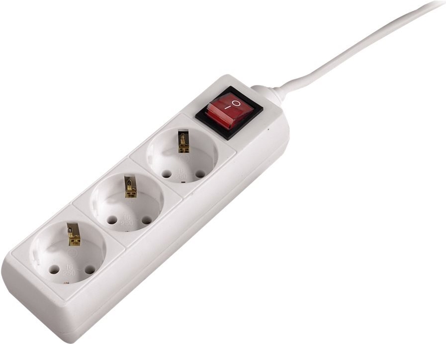 An der "Steckdosenleiste 3fach, mit Schalter, 3 m, weiß" mit dem beleuchteten zweipoligen Ein- und Ausschalter können bis zu drei Elektrogeräte angehängt werden. Auf diese Weise haben Sie nie wieder ein Anschlussproblem. Die Steckplätze sind um 45° gedreht und lassen es zu, neben Netzsteckern auch drei Schutzkontakt-Stecker gleichzeitig anzuschließen. Echt clever.