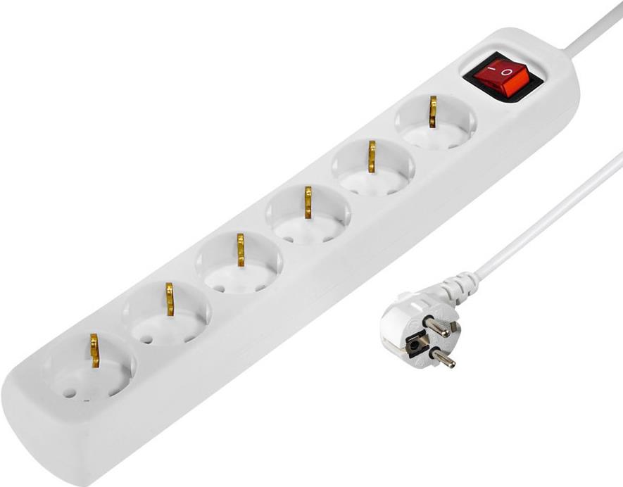 Hama Distribution Panel 6-Way with Switch/Children Protection - Verlängerungsschnur - Wechselstrom 230 V - output connectors: 6 - 1.4 m - weiß