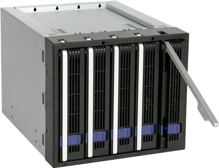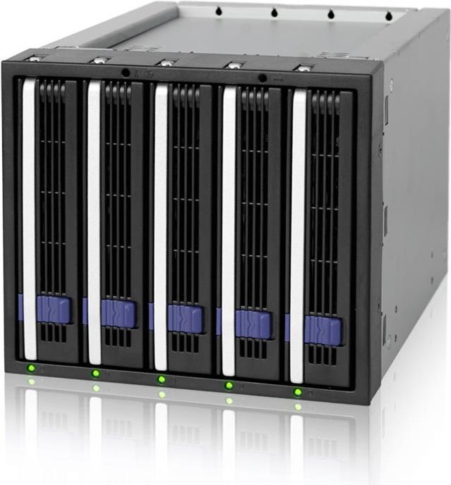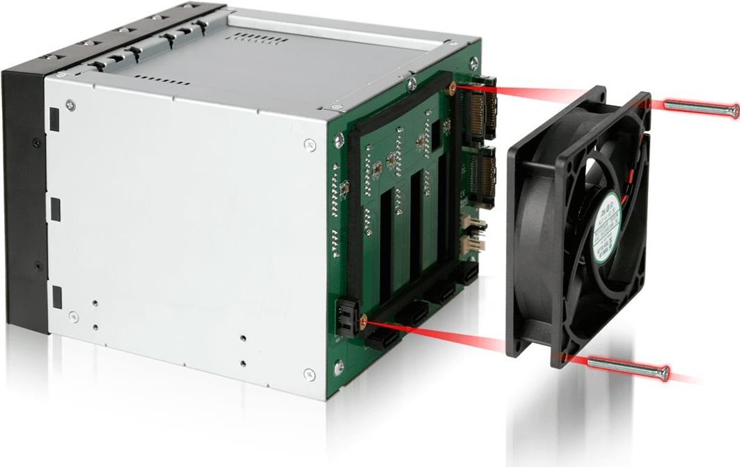 Weitere Infos: bis zu 6 Gb/sec (SATA III), Lüfter an der Rückseite (92x92x25 mm), Jumper zur Lüftersteuerung (hoch, niedrig, aus), fünf SATA-Anschlüsse, drei SATA-Strmanschlüsse, unterstützt Festplatten bis 4 TB, unterstützt Hot-Swap (abhängig vom Controller)