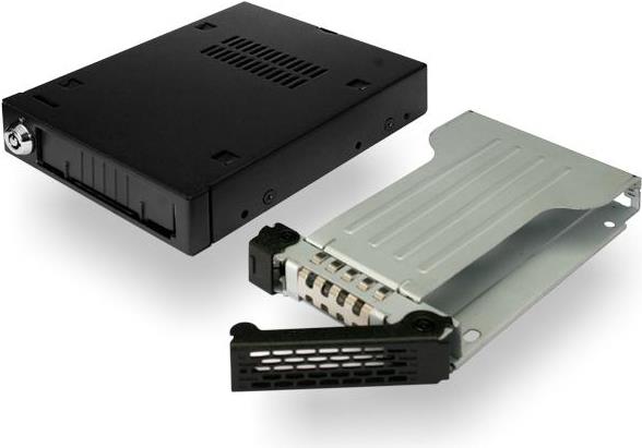 Der Icy Dock ToughArmor MB991SK-B 2,5\" SATA-Wechselrahmen für den Einbau in einen 3,5\" Floppy-Schacht ist eine kompakte Lösung für Systeme mit beschränktem Raum. Auf Grund der Konstruktion aus solidem Metall ist das Gerät selbst unter den widrigsten und fordernsten Betriebsumgebungen. Empfohlene Anwendungsgebiete sind unter anderem medizinische und militärische Systeme, Medienserver und IPCs wie sie von Tier 1 Unternehmen bereits verwendet werden.