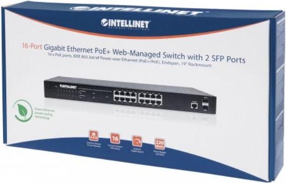 | Produktbeschreibung | Intellinet 16-Port Gigabit Ethernet PoE+ Web-Managed Switch with 2 SFP Ports - Switch - 16 Anschlüsse - verwaltet - Desktop, an Rack montierbar |
