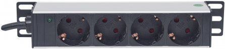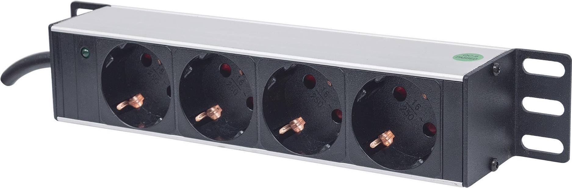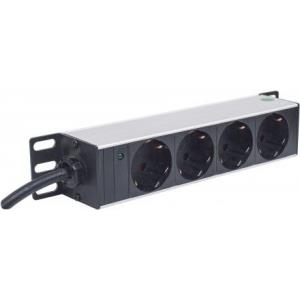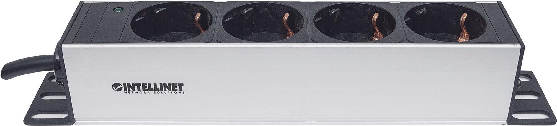Intellinet 25,40cm (10") 1U Rackmount 4-Way Power Strip - German Type", With Power Indicator, No Surge Protection, 1.8m Power Cord - Steckdosenleiste |