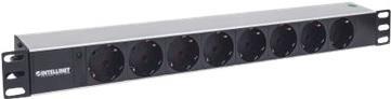 INTELLINET 48,3cm 48,30cm (19") Steckdosenleiste 8-fach SCHUKO mit Power LED ohne Ueberspannungsschutz 1,6m Stromkabel 1,5 HE (714037)
