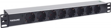 Diese hochwertige Intellinet Steckdosenleiste aus robustem Aluminium lässt sich horizontal in 19" Schränken und Wandverteilern montieren.