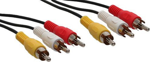 Cinch-Kabel zum Anschluss von Audio/Video-Geräten (Fernseher, Video, etc.) an Wiedergabegeräte (Hifi-Anlage, Spielkonsole)• 2x 2 Cinch Stecker für Audio (rot/weiss)• 2x 1 Cinch Stecker für Video (gelb)