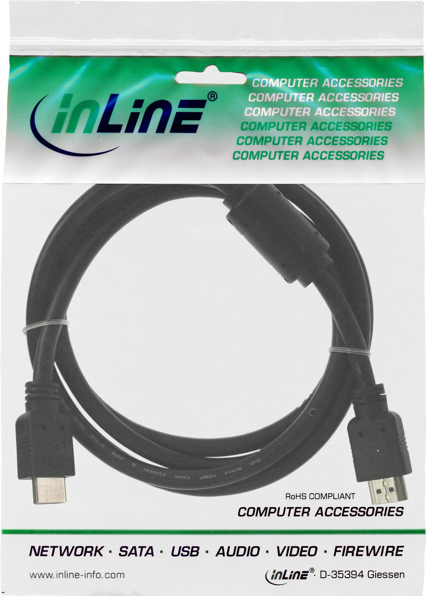 InLine® HDMI Kabel, High Speed HDMI® Cable, St/St, schwarz, mit Ferrit, 1,8m (17602)