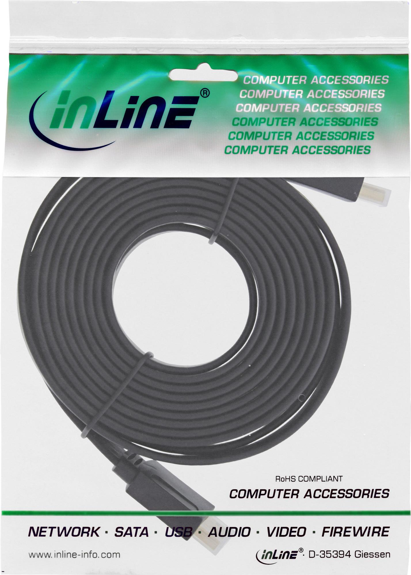 InLine® HDMI Flachkabel, High Speed HDMI® Cable with Ethernet, verg. Kontakte, schwarz, 1,5m (17001F)