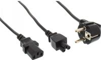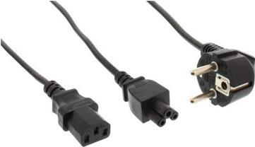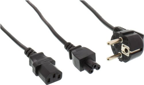 Dieses Netz-Y-Kabel dient dazu, ein Notebook (-Netzteil) und einen Monitor (oder Drucker etc.) an nur einer Stromsteckdose zu betreiben.• Schutzkontaktstecker CEE7/7 gewinkelt auf 1x Notebookstecker IEC-C5 und 1x Kaltgerätestecker IEC-C13