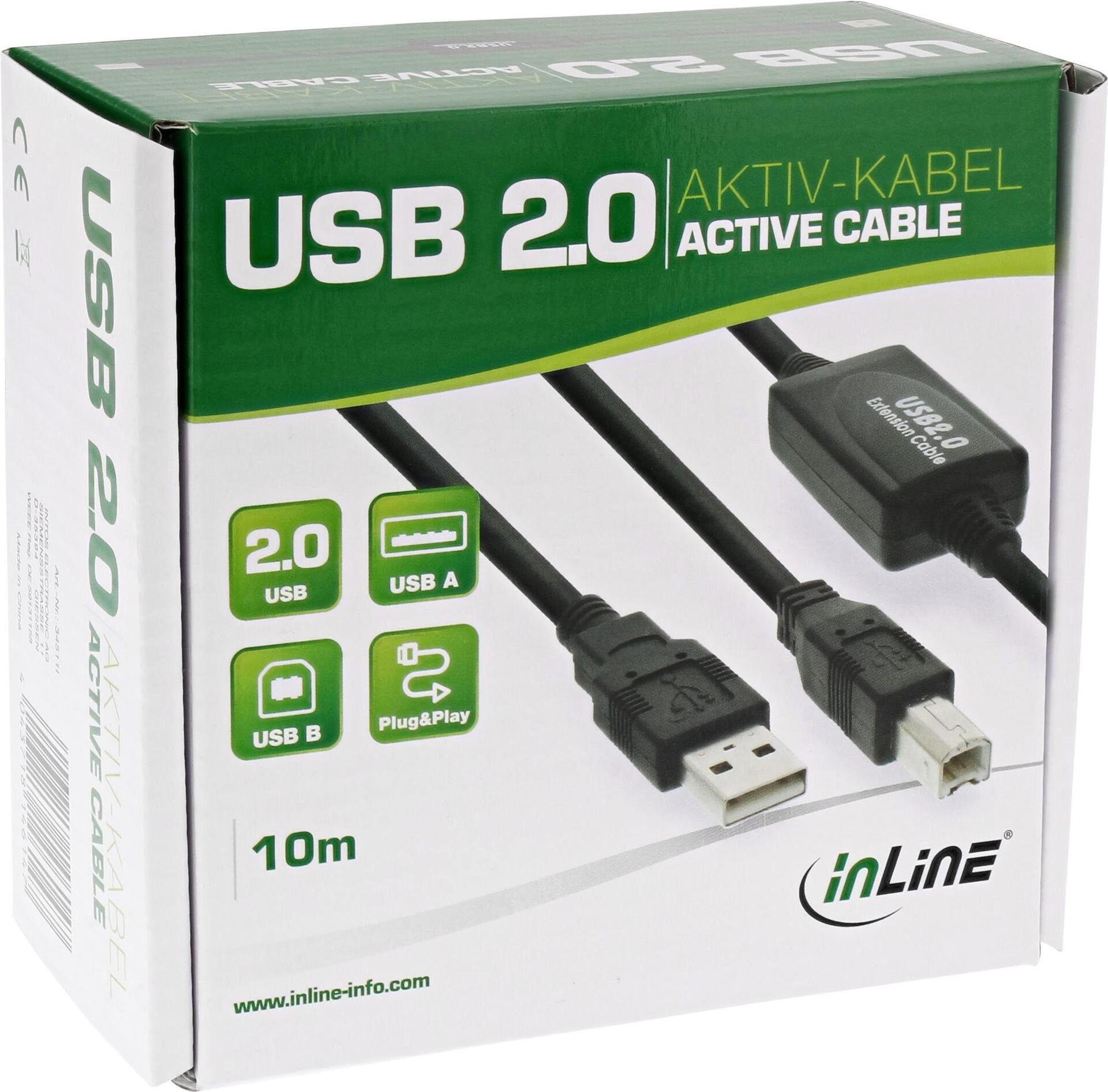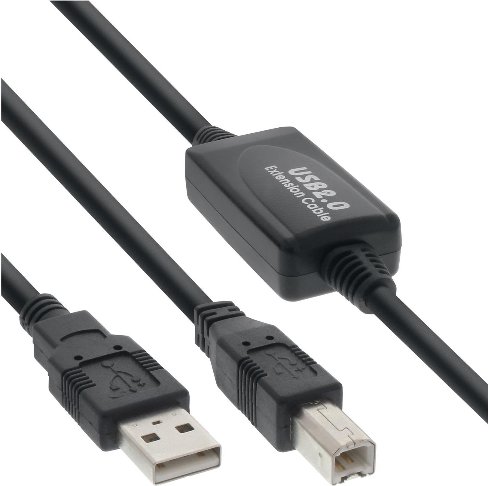 InLine - USB-Kabel - USB (M) zu USB Typ B (M) - USB2.0 - 10,0m - aktiv - Schwarz (34511I)