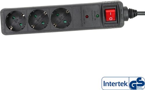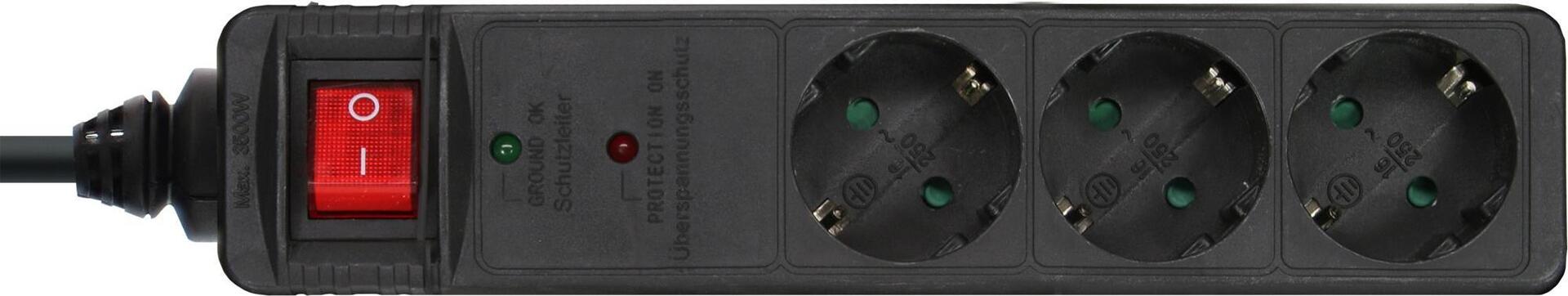 InLine® Steckdosenleiste, 3-fach Schutzkontakt, mit Überspannungsschutz, Schalter, 1,5m, schwarz (16431P)