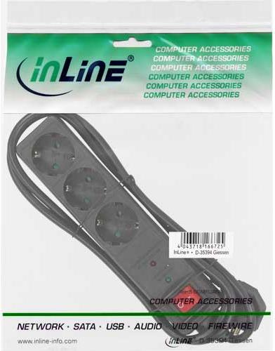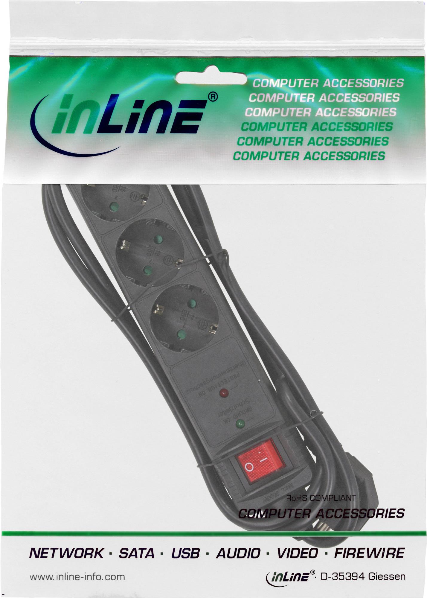 InLine® Schutzkontakt-Steckdosenleiste mit Überspannungsschutz • Anschlüssse: 3x Schutzkontakt