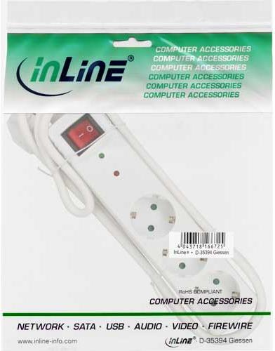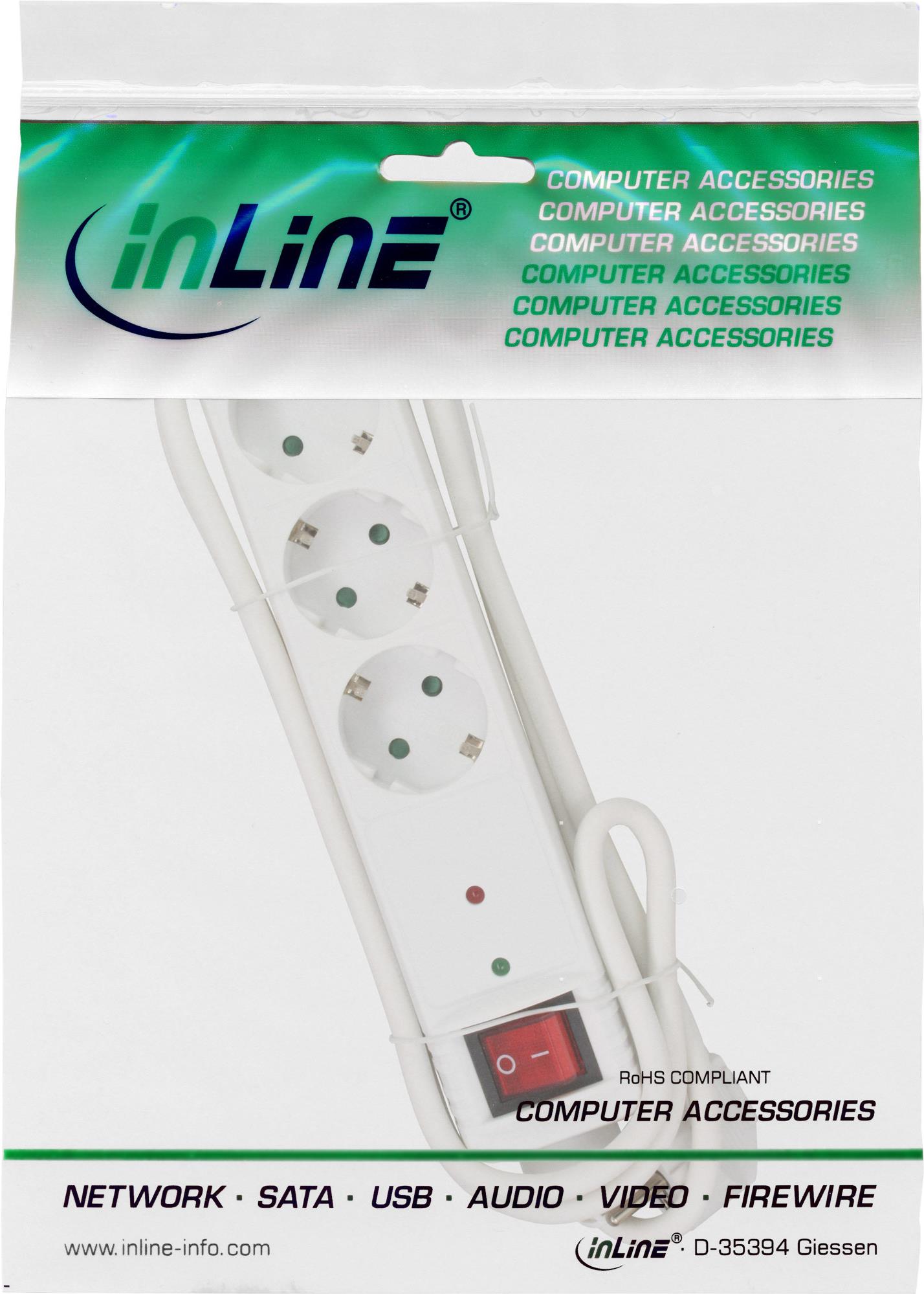 InLine® Steckdosenleiste, 3-fach Schutzkontakt, mit Überspannungsschutz, mit Schalter, 1,5m, weiß (16431Q)