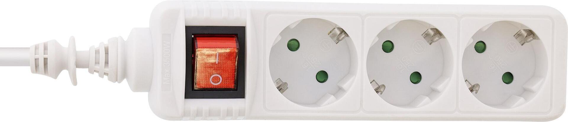 InLine® Steckdosenleiste, 3-fach Schutzkontakt, mit Schalter, 1,5m, weiß (16431T)