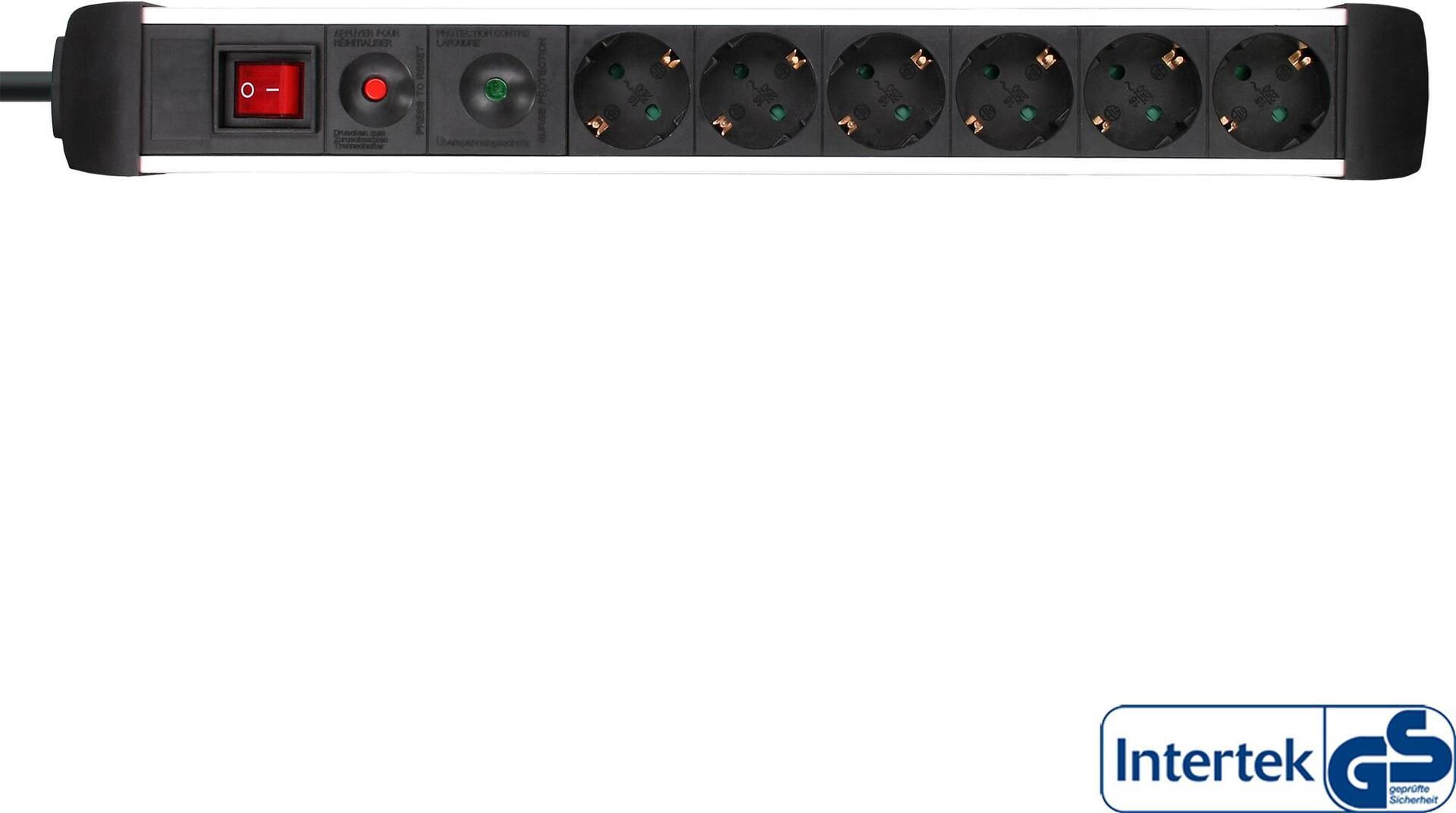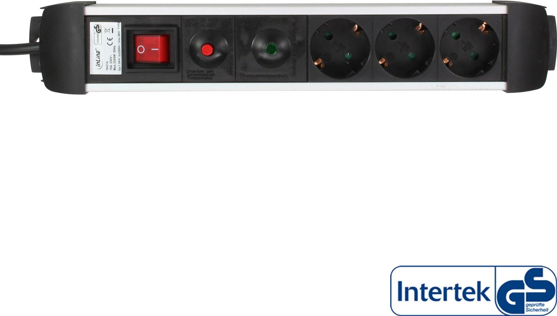 InLine® Steckdosenleiste, Alu, 6-fach Schutzkontakt, mit Überlast- und Überspannungsschutz, mit Schalter, 1,5m (16436A)