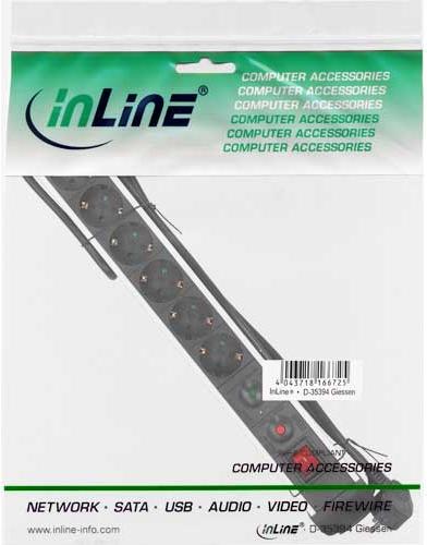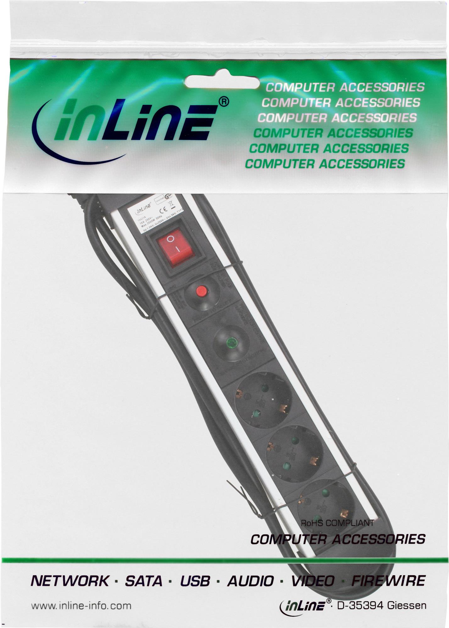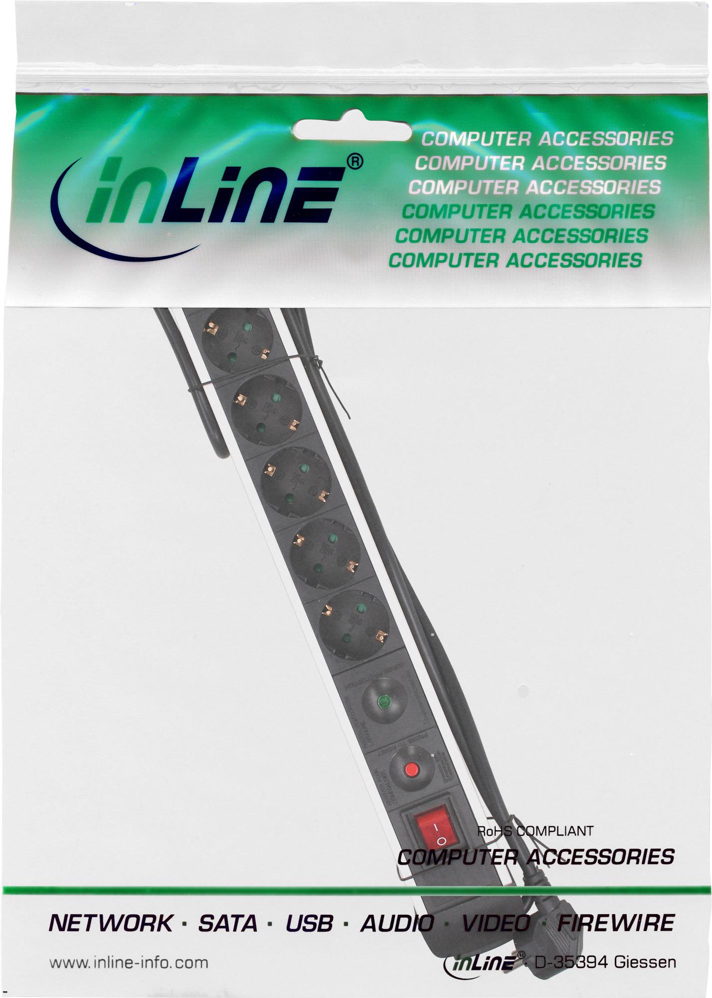 InLine® Steckdosenleiste, Alu, 6-fach mit Überlast- und Überspannungsschutz • Anschlüssse: 6x Schutzkontakt