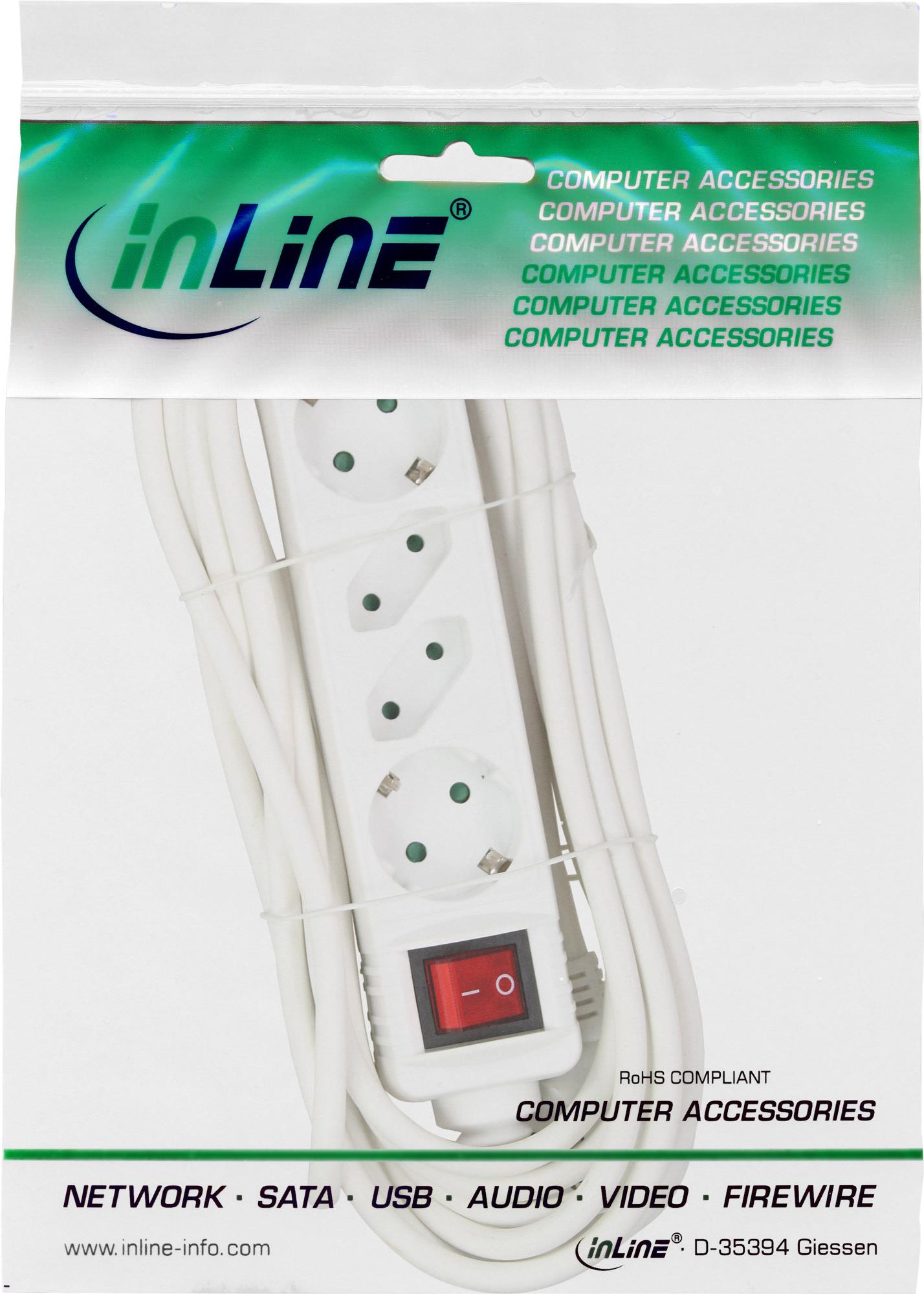 InLine® Schutzkontakt-Steckdosenleiste • Anschlüssse: 2xSchutzkontakt + 2xEuro