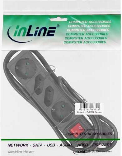 InLine® Schutzkontakt-Steckdosenleiste • Anschlüssse: 2xSchutzkontakt + 2xEuro