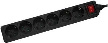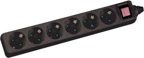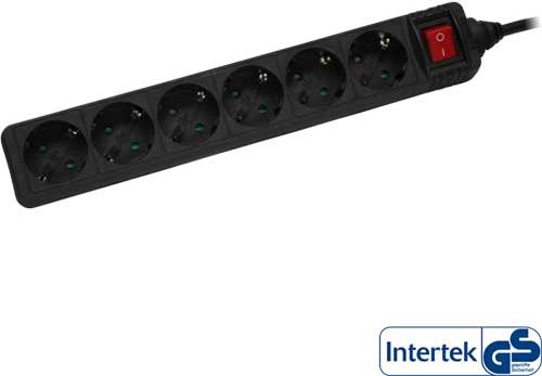 InLine® Steckdosenleiste, 6-fach Schutzkontakt, mit Schalter, 1,5m, schwarz (16461S)