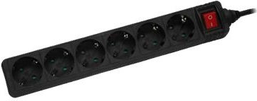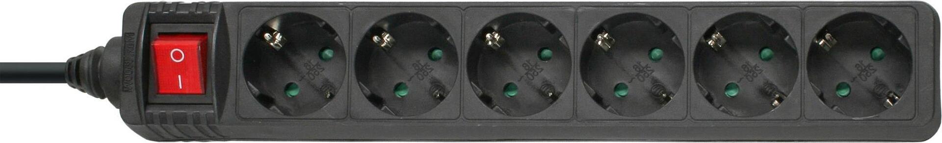 InLine® Steckdosenleiste, 6-fach Schutzkontakt, mit Schalter, 3m, schwarz (16463T)