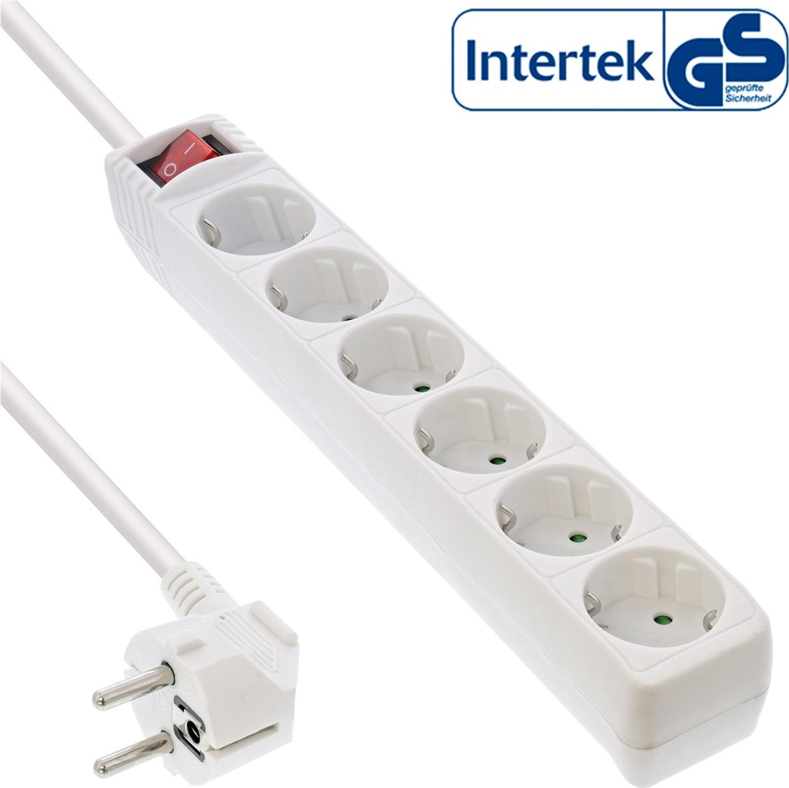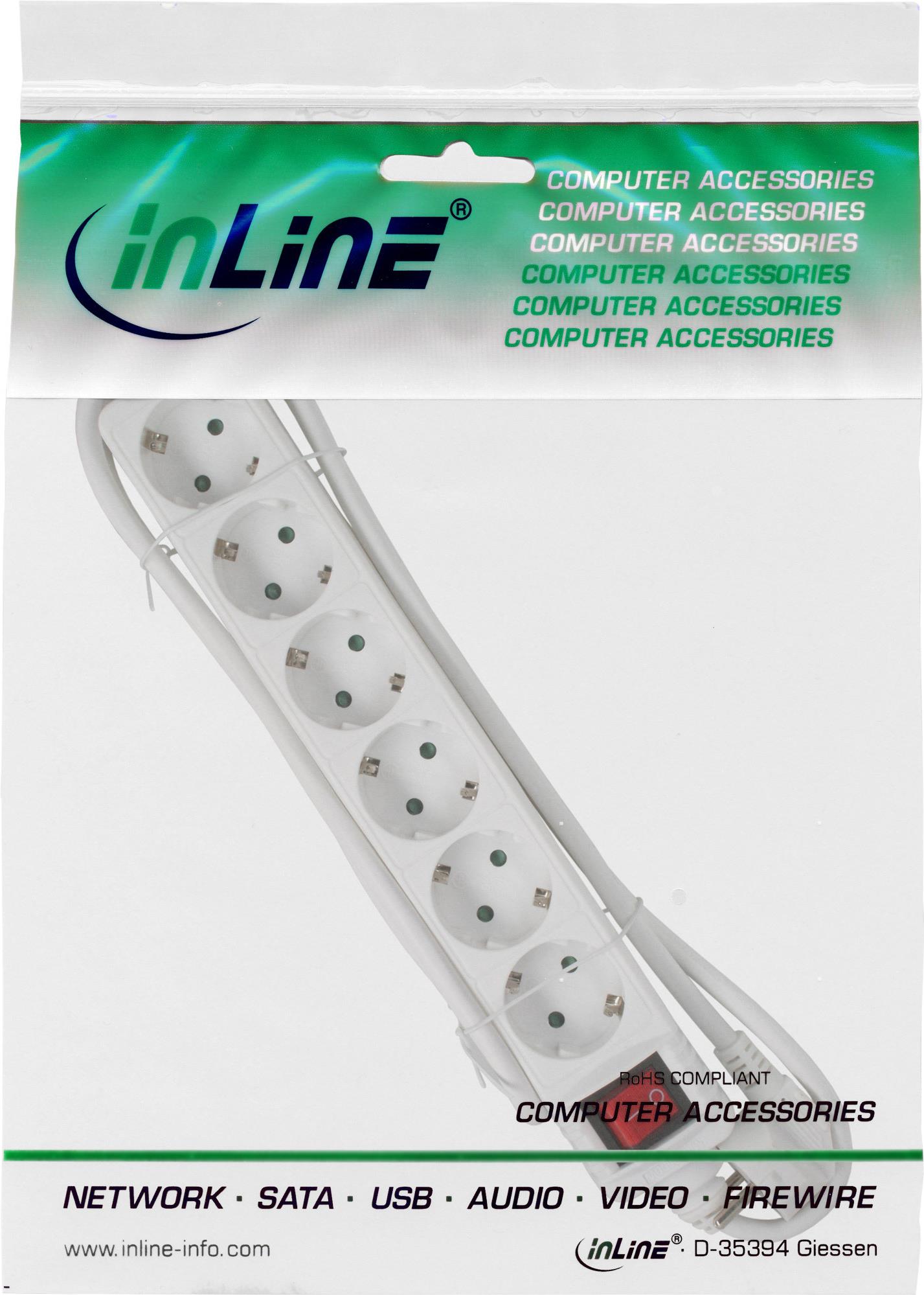 InLine® Steckdosenleiste, 6-fach Schutzkontakt, mit Schalter, 5m, weiß (16465S)