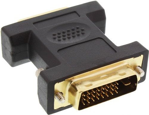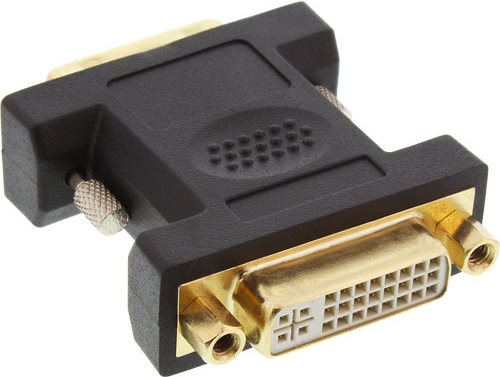 Dieser Adapter ermöglicht den Anschluss eines Kabels mit einem DVI-I 24+5 Stecker an eine DVI-D 24-1 Buchse.