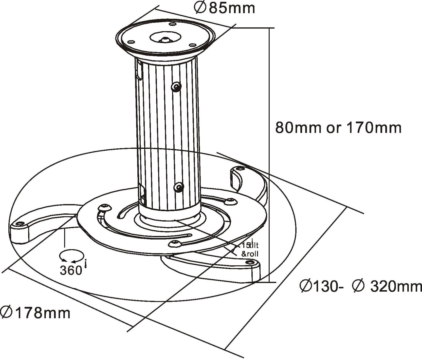 InLine - Befestigungskit (Deckenhalterung) für Projektor - Höhe 130/200mm (23134A)