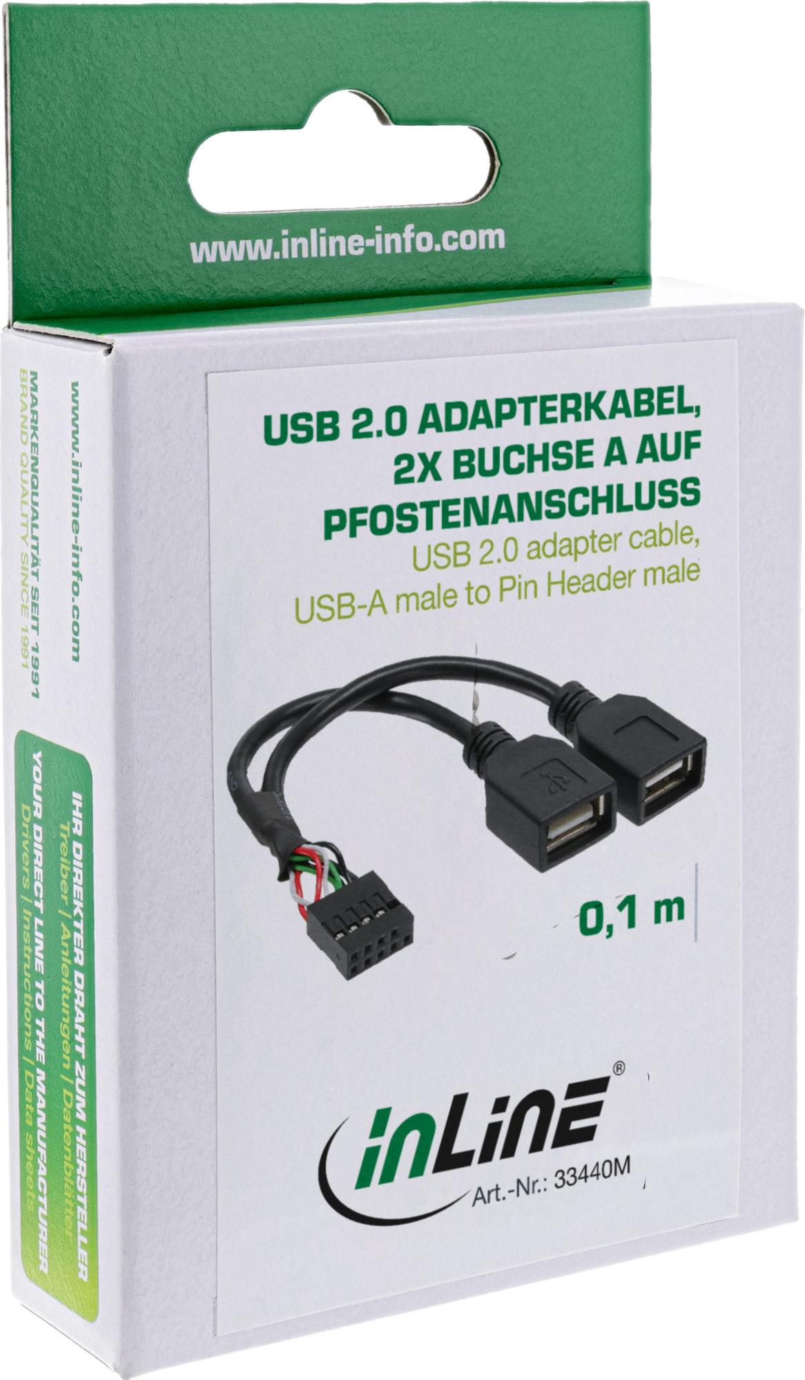 USB 2.0 Adapterkabel, InLine®, 2x Buchse A auf Pfostenanschluss (33440M)