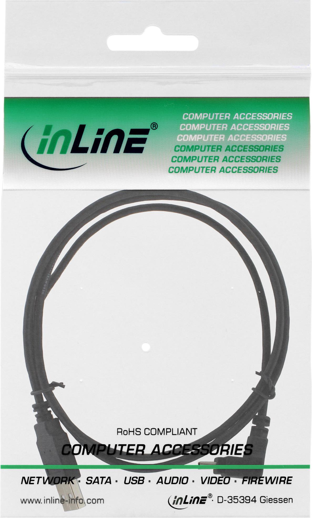 InLine® USB 2.0 Mini-Kabel, Stecker A an Mini-B Stecker (5pol.) unten abgewinkelt 90°, schwarz, 2m (34220)