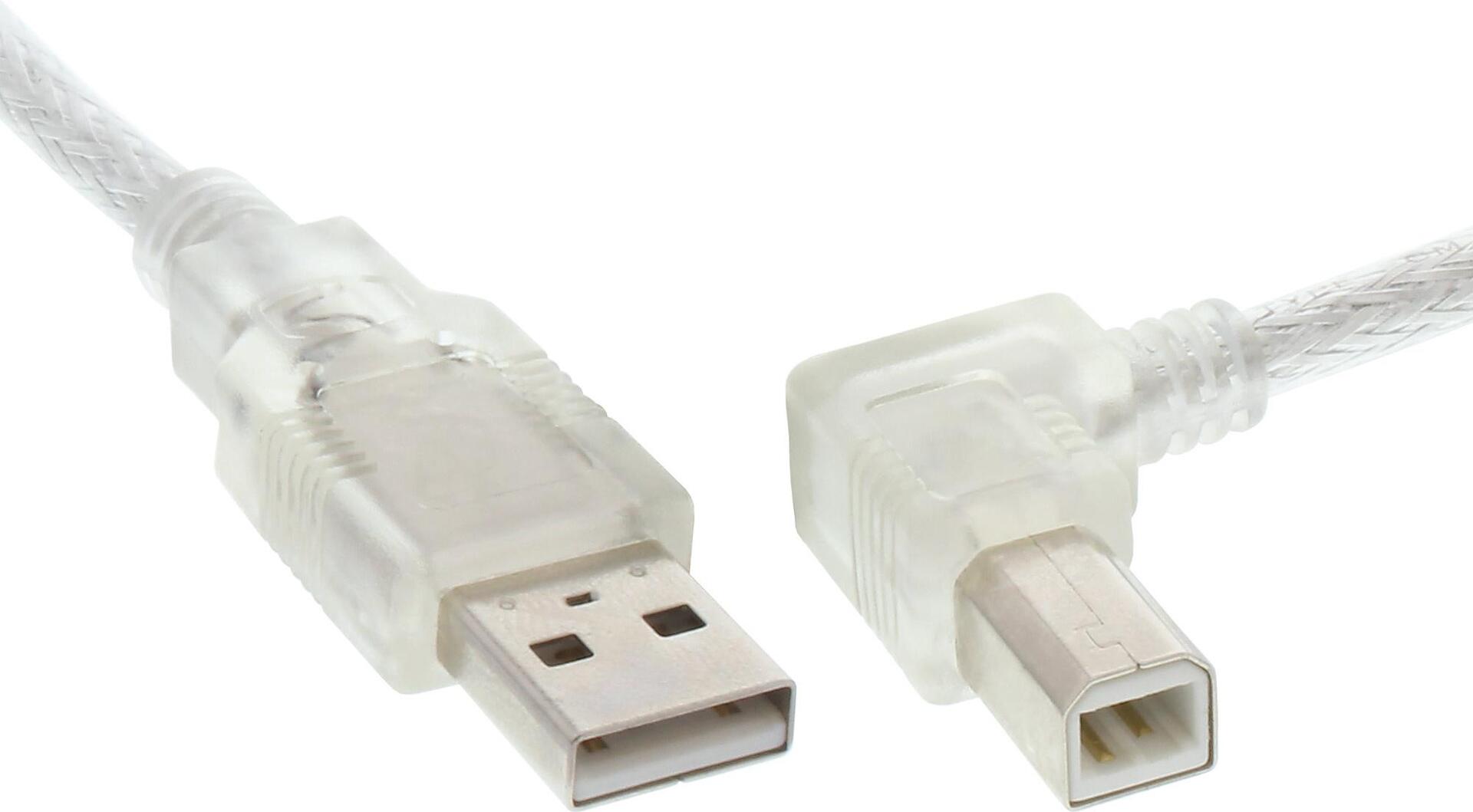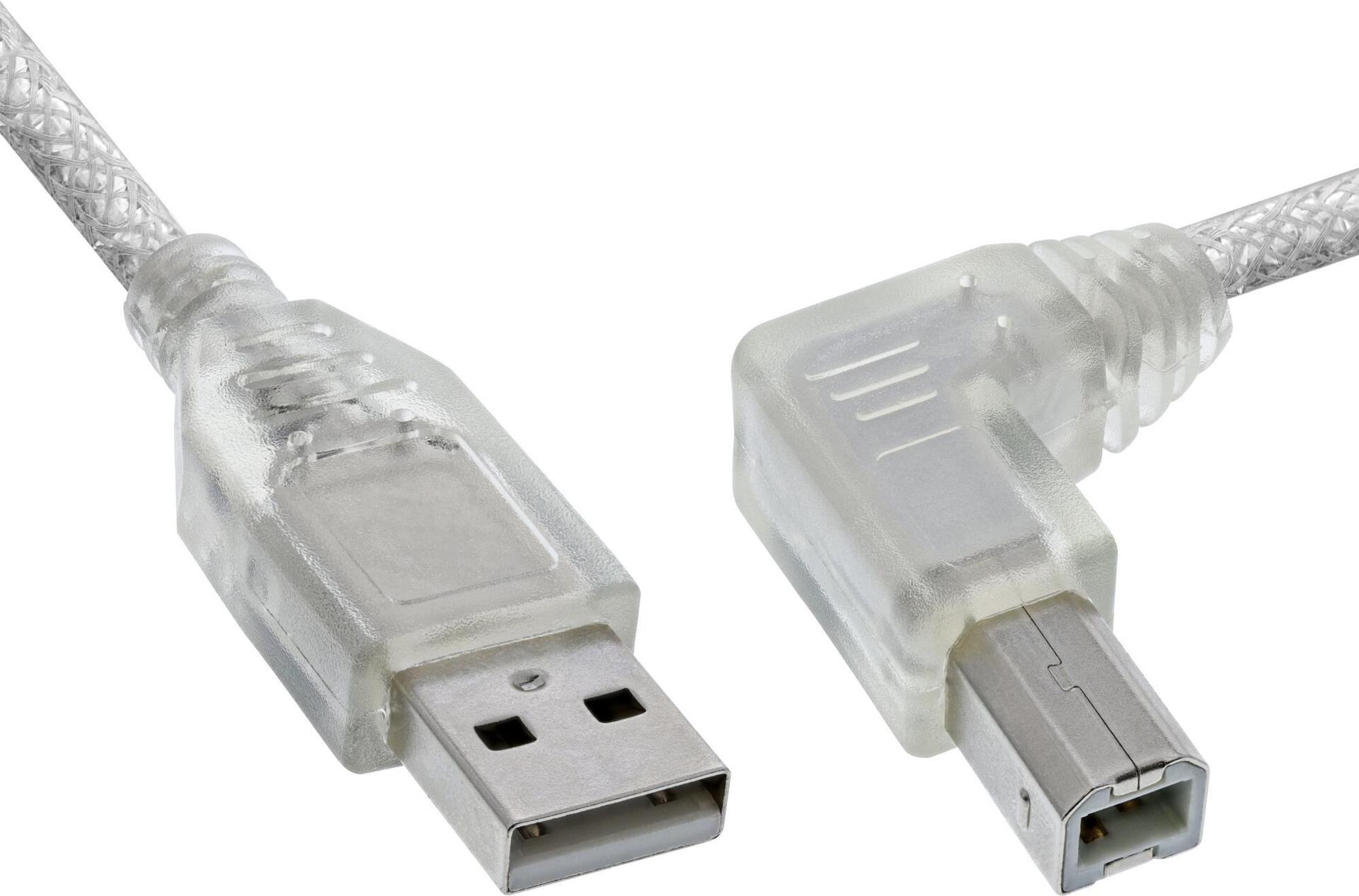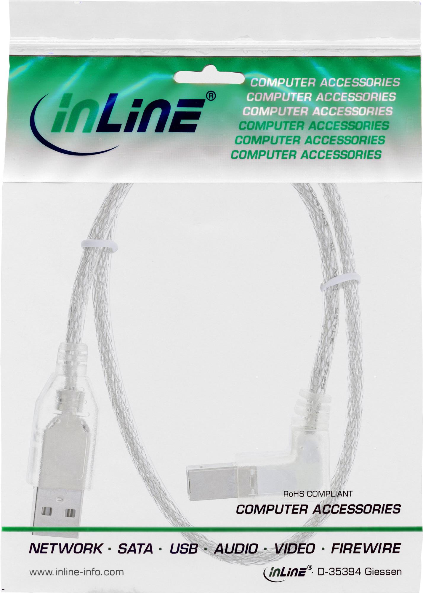 InLine® USB 2.0 Kabel, A an B rechts abgewinkelt, transparent, 3m (34521R)