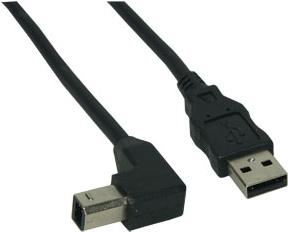 InLine® High Speed USB 2.0 ( Universal Serial Bus ) Kabel für die Datenübertragung mit einer maximalen Geschwindigkeit von 480Mbit/s. Dieses Kabel ist mit allen USB 2.0 und USB 1.1 und USB 1.0 Schnittstellengeräten kompatibel. Der um 90 Grad gebogene Typ-B-Stecker erleichtert die Installation in allen Situationen, in denen der Platz knapp ist.• USB Typ A Stecker auf USB Typ B Stecker