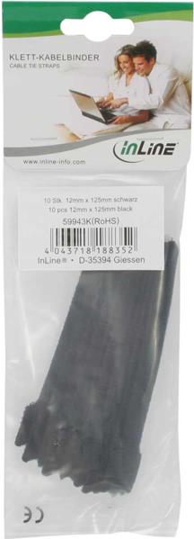 InLine® Kabelbinder 12x125mm, Klett-Verschluss, 10er, schwarz. Die Inline® Klettkabelbinder finden in vielen Bereichen Anwendung. Sie sind schnell und einfach per Hand anzubringen und auch sehr leicht wieder zu lösen. Besonders empfehlenswert, da sie wiederverwendbar sind und zudem einen enormen Halt bieten. Widerstandsfähig gegen Seewasser, Öle und Fette.