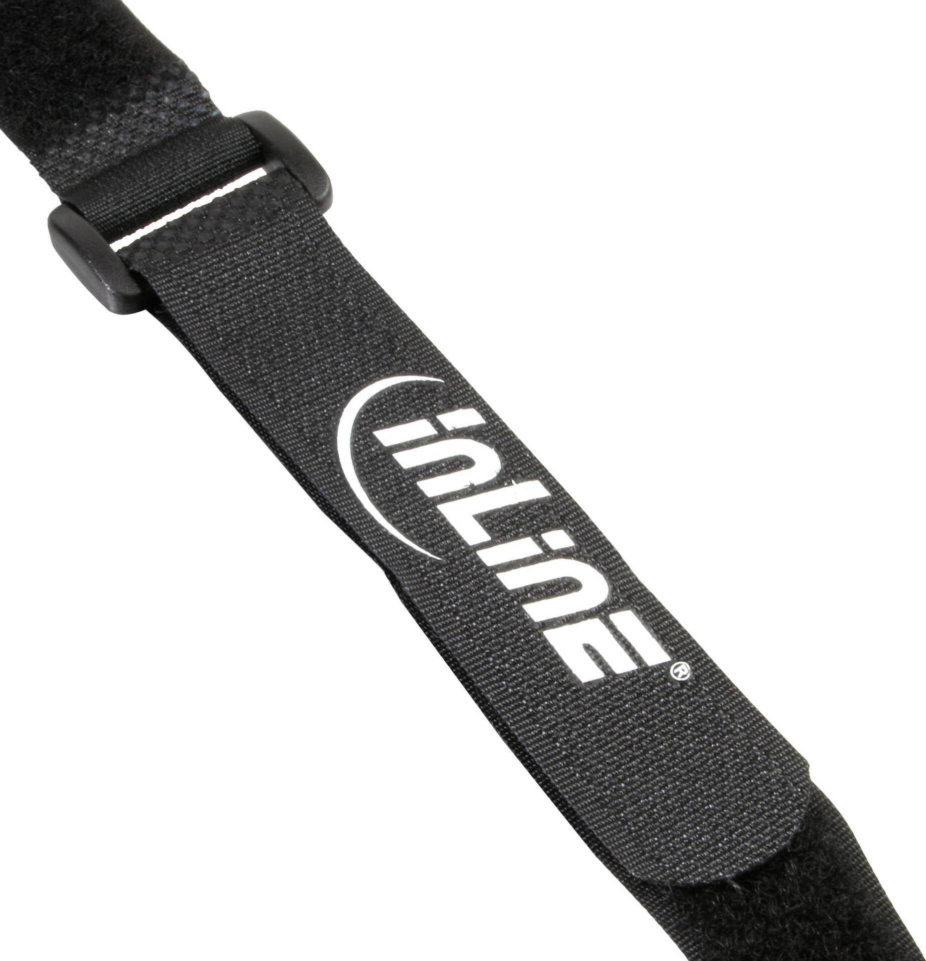 InLine® Klettschlaufen 20x200mm, 10er, schwarz. Die Inline® Klettschlaufen finden in vielen Bereichen Anwendung. Sie sind schnell und einfach per Hand anzubringen und auch sehr leicht wieder zu lösen. Besonders empfehlenswert, da sie wiederverwendbar sind und zudem einen enormen Halt bieten. Widerstandsfähig gegen Seewasser, Öle und Fette.