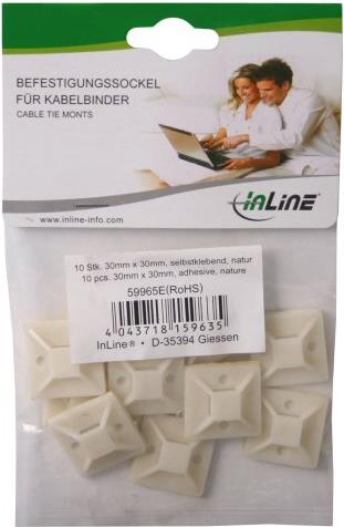 InLine® Befestigungssockel für Kabelbinder, 30x30mm, 10stk., selbstklebend, natur (59965E)