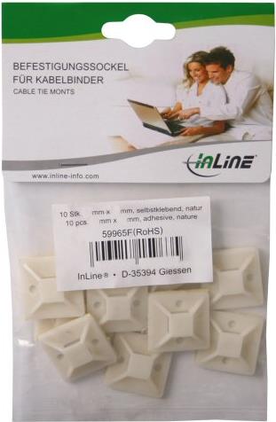 InLine® Befestigungssockel für Kabelbinder, 40x40mm, 10stk., selbstklebend, natur (59965F)