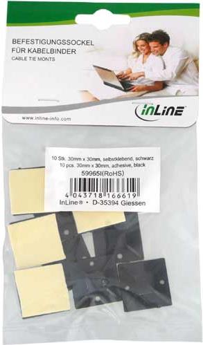 InLine® Befestigungssockel für Kabelbinder, 30x30mm, 10stk., selbstklebend, schwaz (59965I)