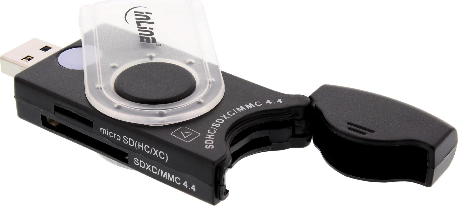 • Unterstützt die wichtigsten Speicherkarten: SDHC, SD, microSD, microSDHC, SDXC, microSDXC, MMC, MMCmobile, MMCplus, RS-MMC / Mit Adapter: miniSD, MMCmicro, miniSDHC