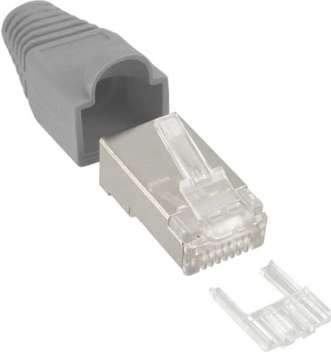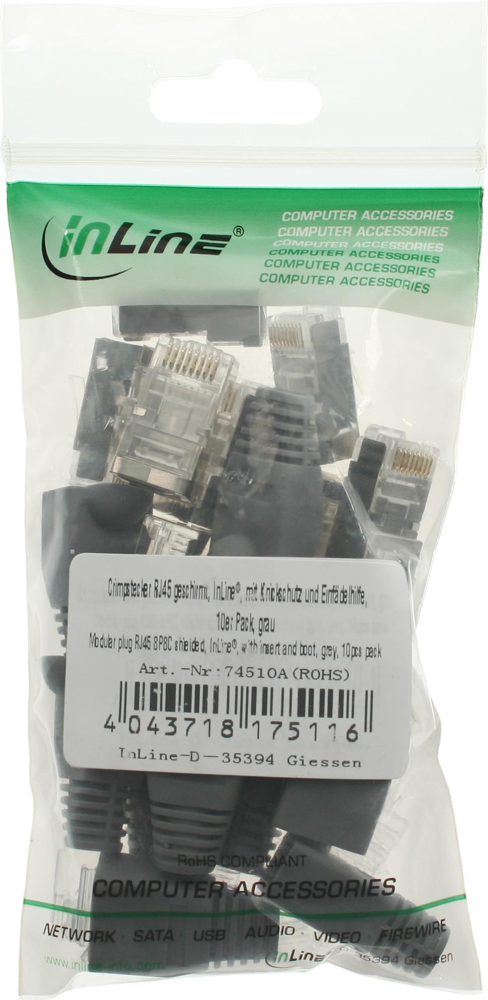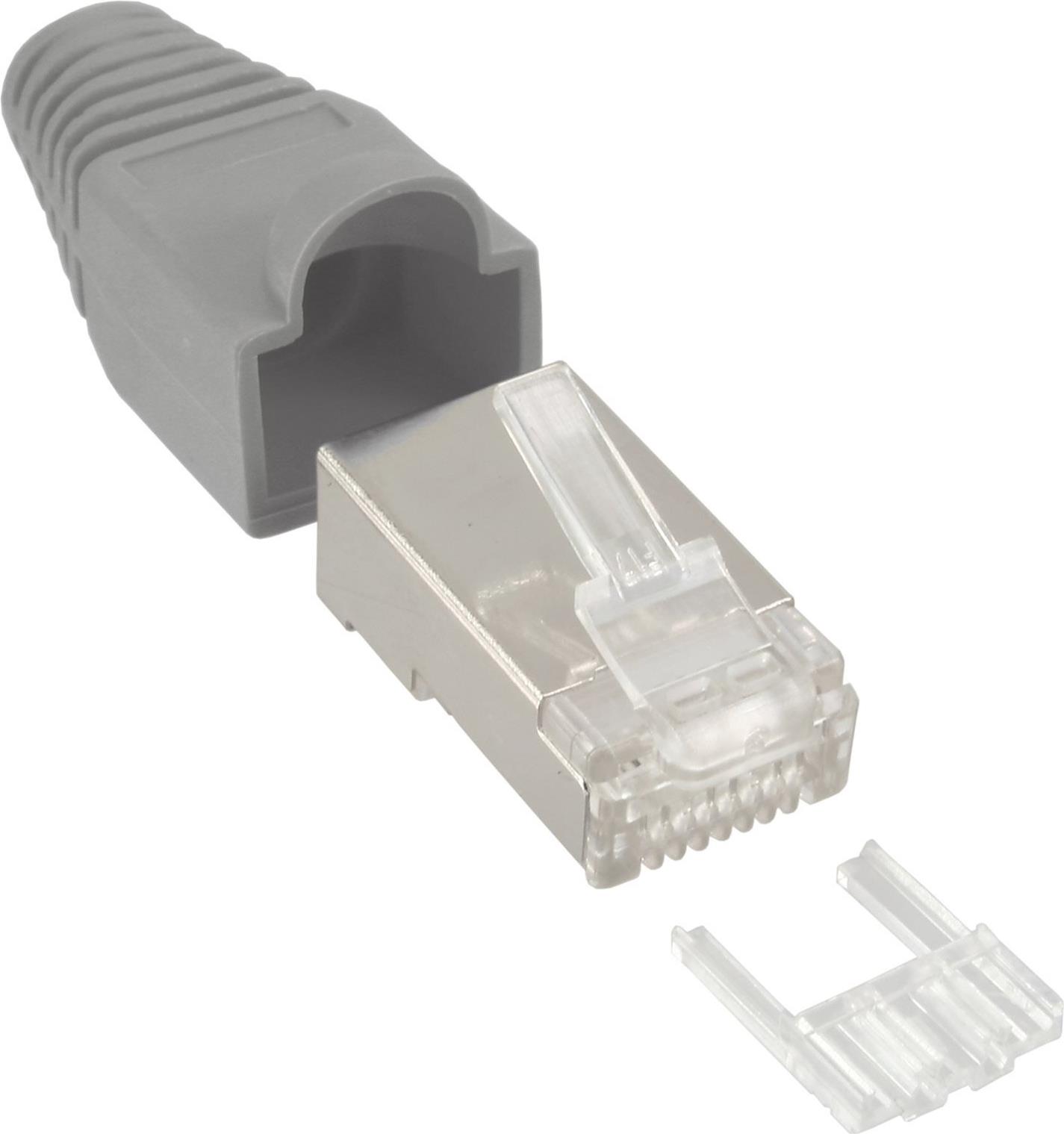 InLine® Crimpstecker RJ45 geschirmt, mit Knickschutz und Einfädelhilfe, 10er Pack, grau (74510A)
