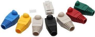 Geschirmter RJ45-Crimpstecker, 3-teilig mit Crimpschutztülle und Einfädelhilfe• Cat.5/5e/Cat.6 kompatibel, geschirmt