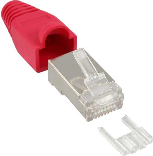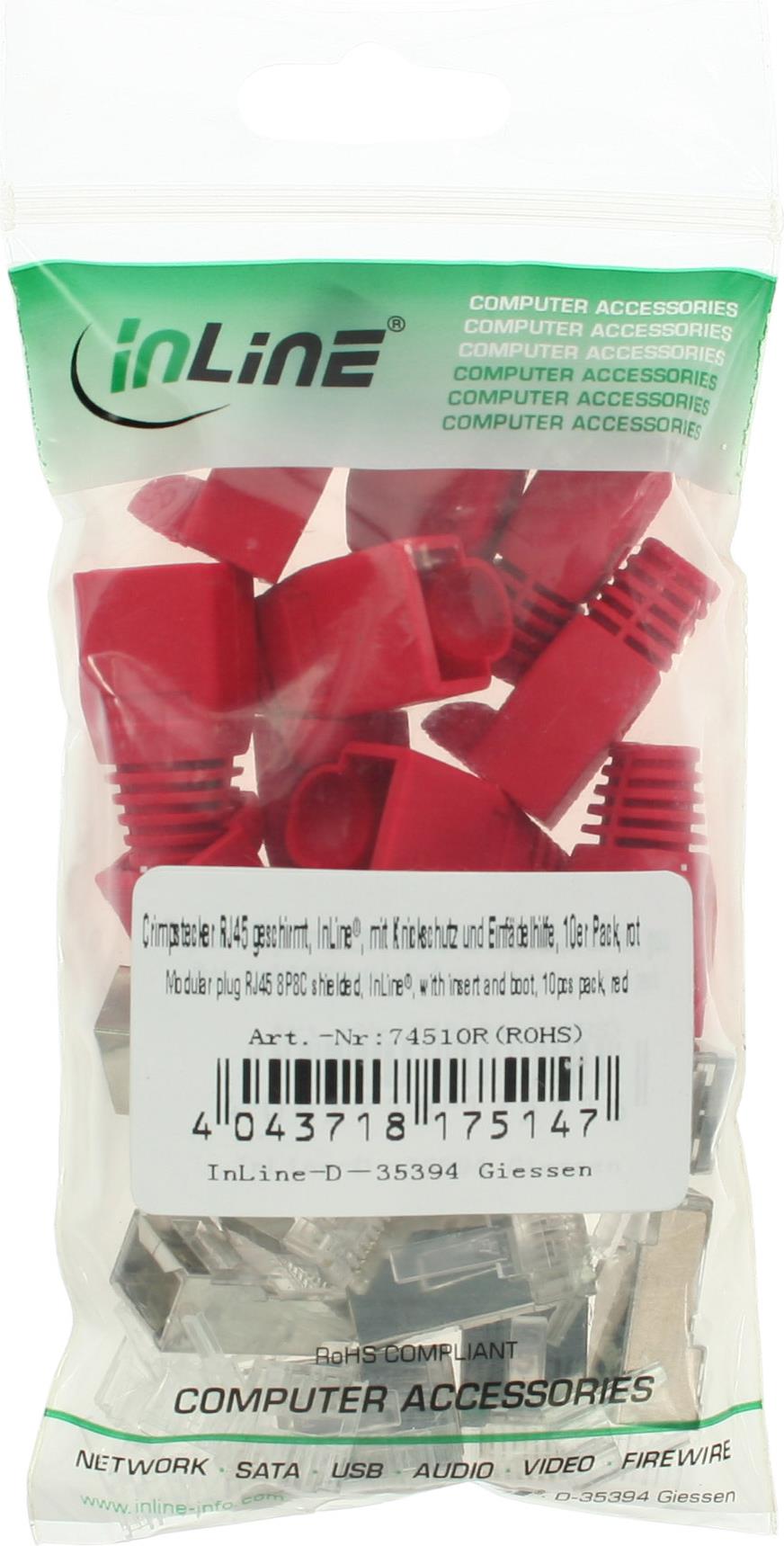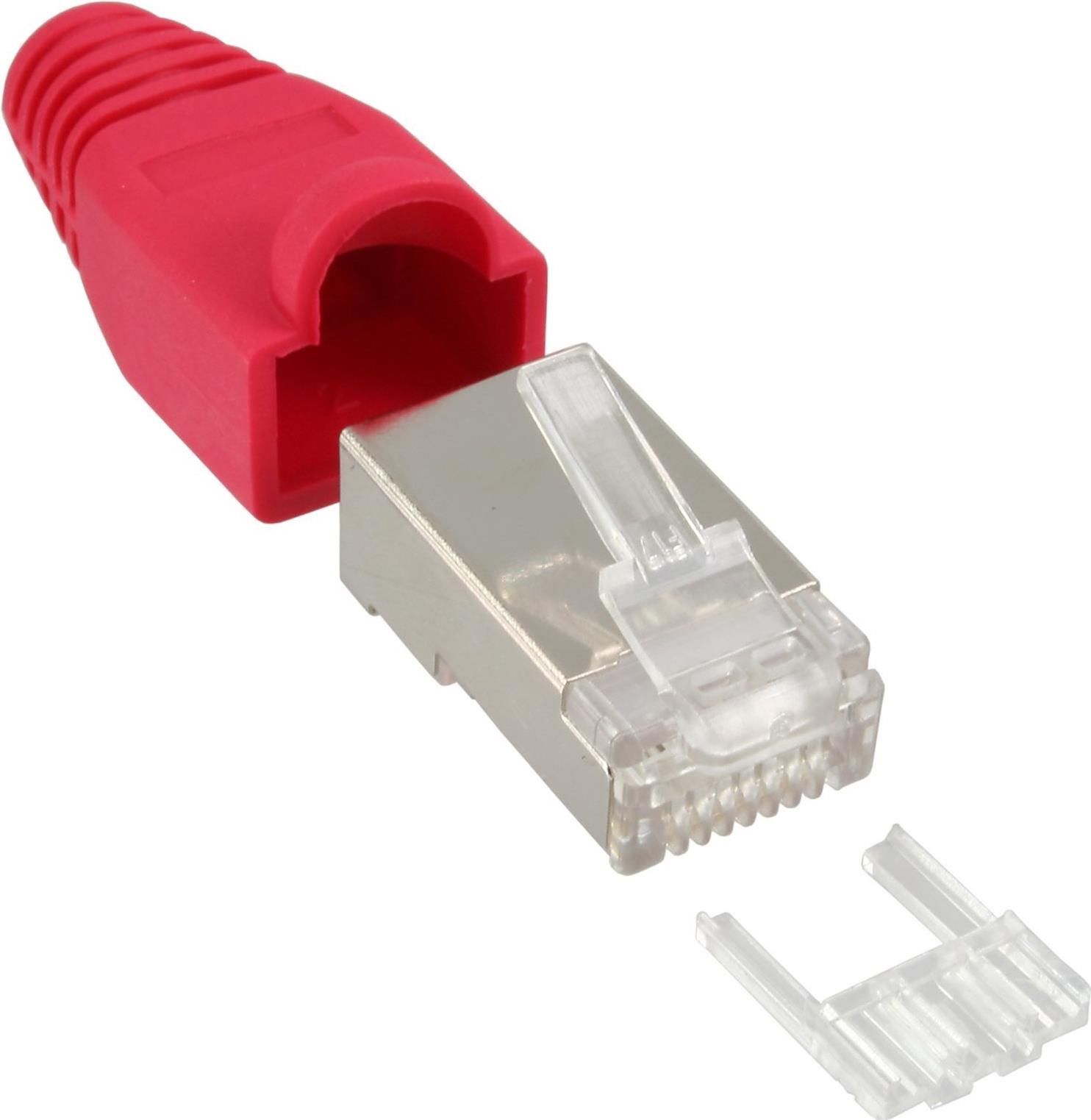 InLine® Crimpstecker RJ45 geschirmt, mit Knickschutz und Einfädelhilfe, 10er Pack, rot (74510R)