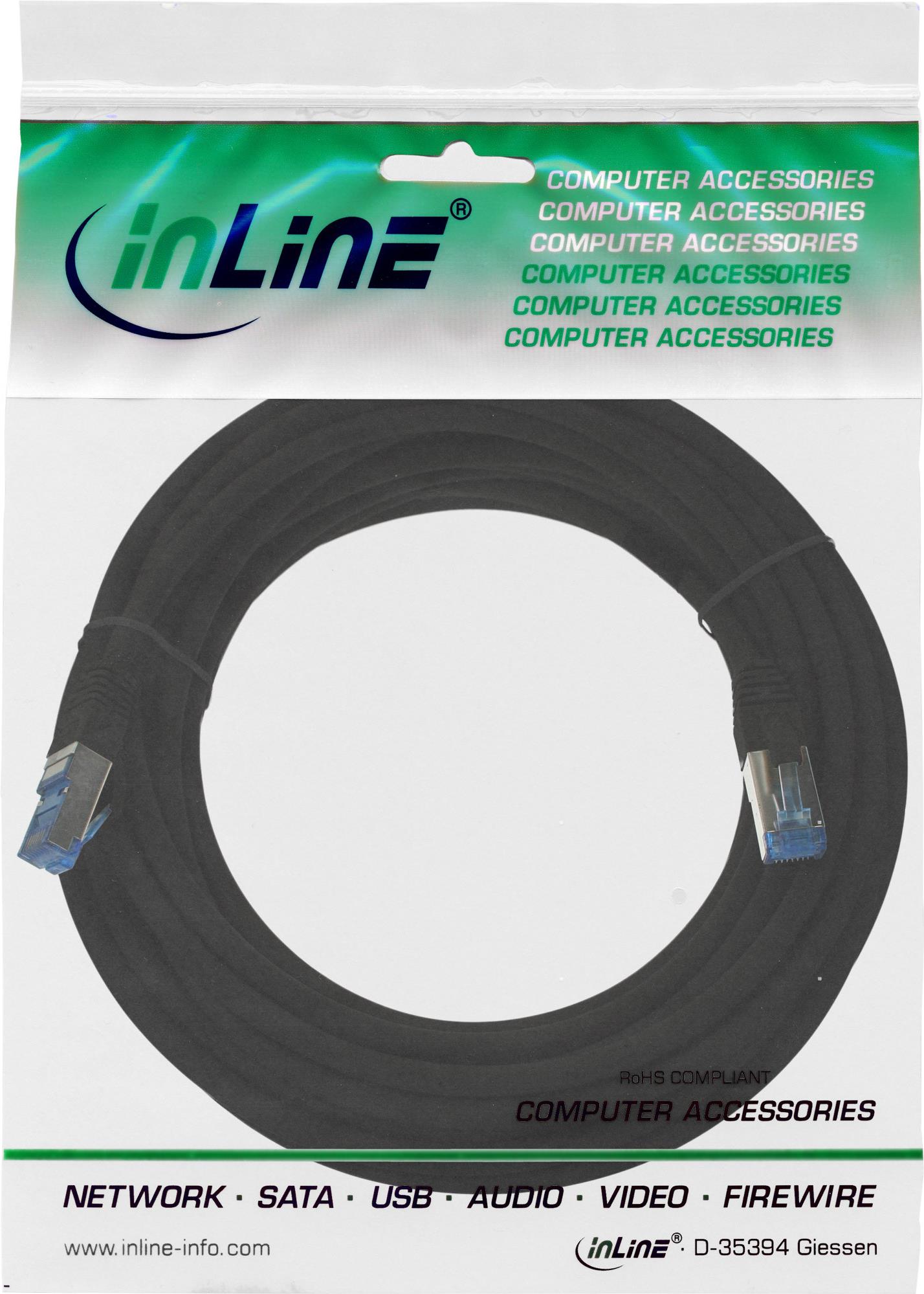 InLine - Patch-Kabel - RJ-45 (M) - RJ-45 (M) - 10,0m - SFTP, PiMF - CAT 6a - glatt, halogenfrei - Schwarz (76800S)