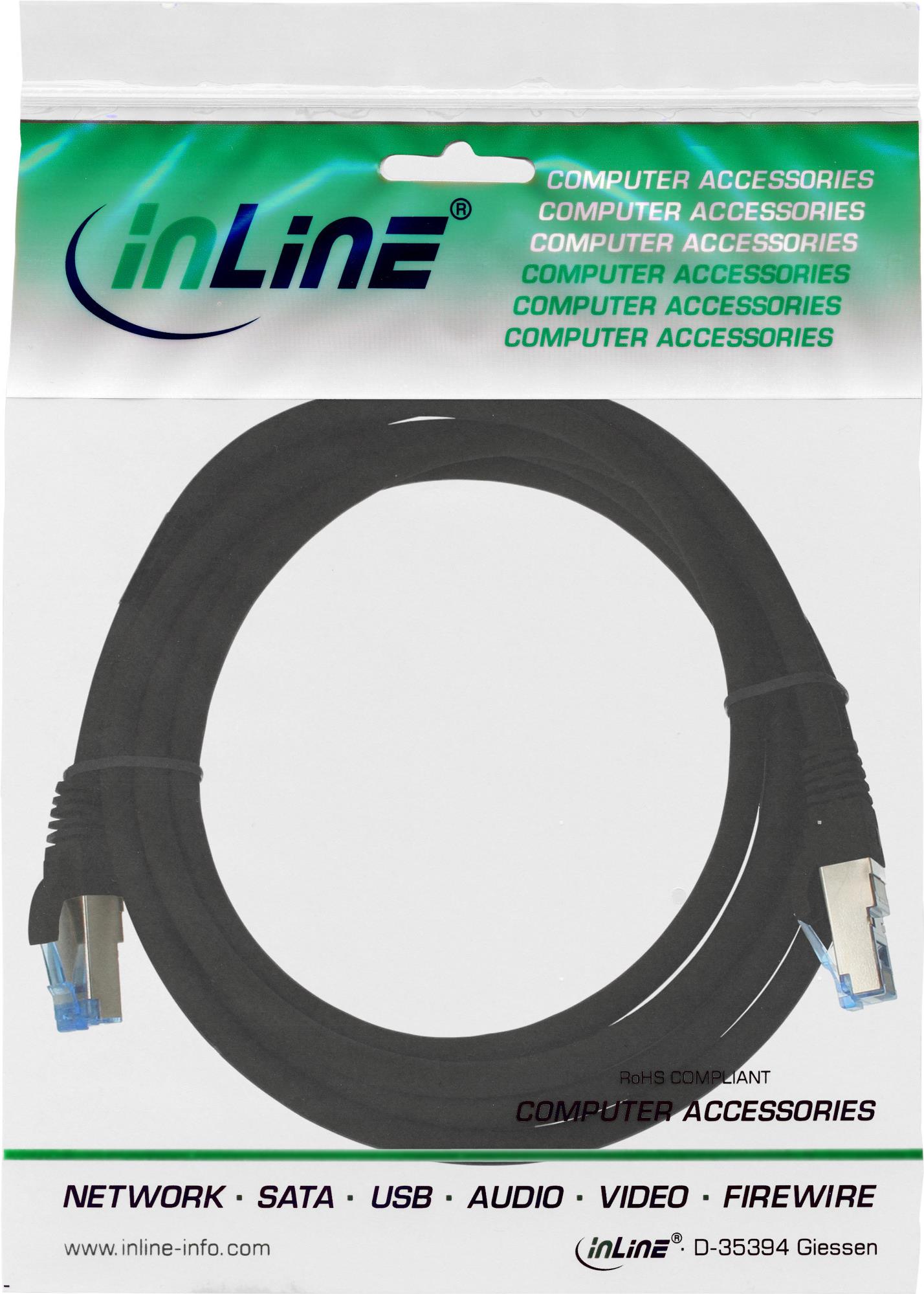 InLine - Patch-Kabel - RJ-45 (M) - RJ-45 (M) - 1,0m - SFTP, PiMF - CAT 6a - glatt, halogenfrei - Schwarz (76811S)