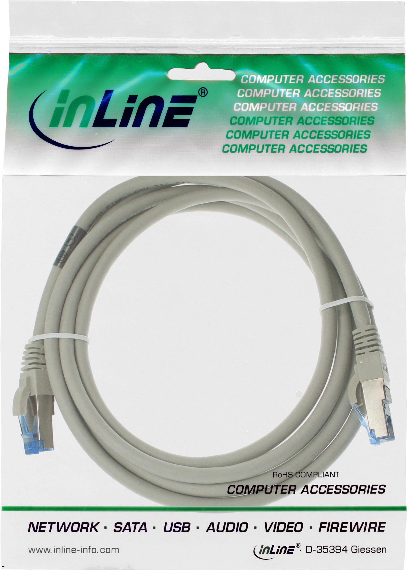 InLine - Patch-Kabel - RJ-45 (M) - RJ-45 (M) - 1,5m - SFTP, PiMF - CAT 6a - glatt, halogenfrei - Grau (76814)
