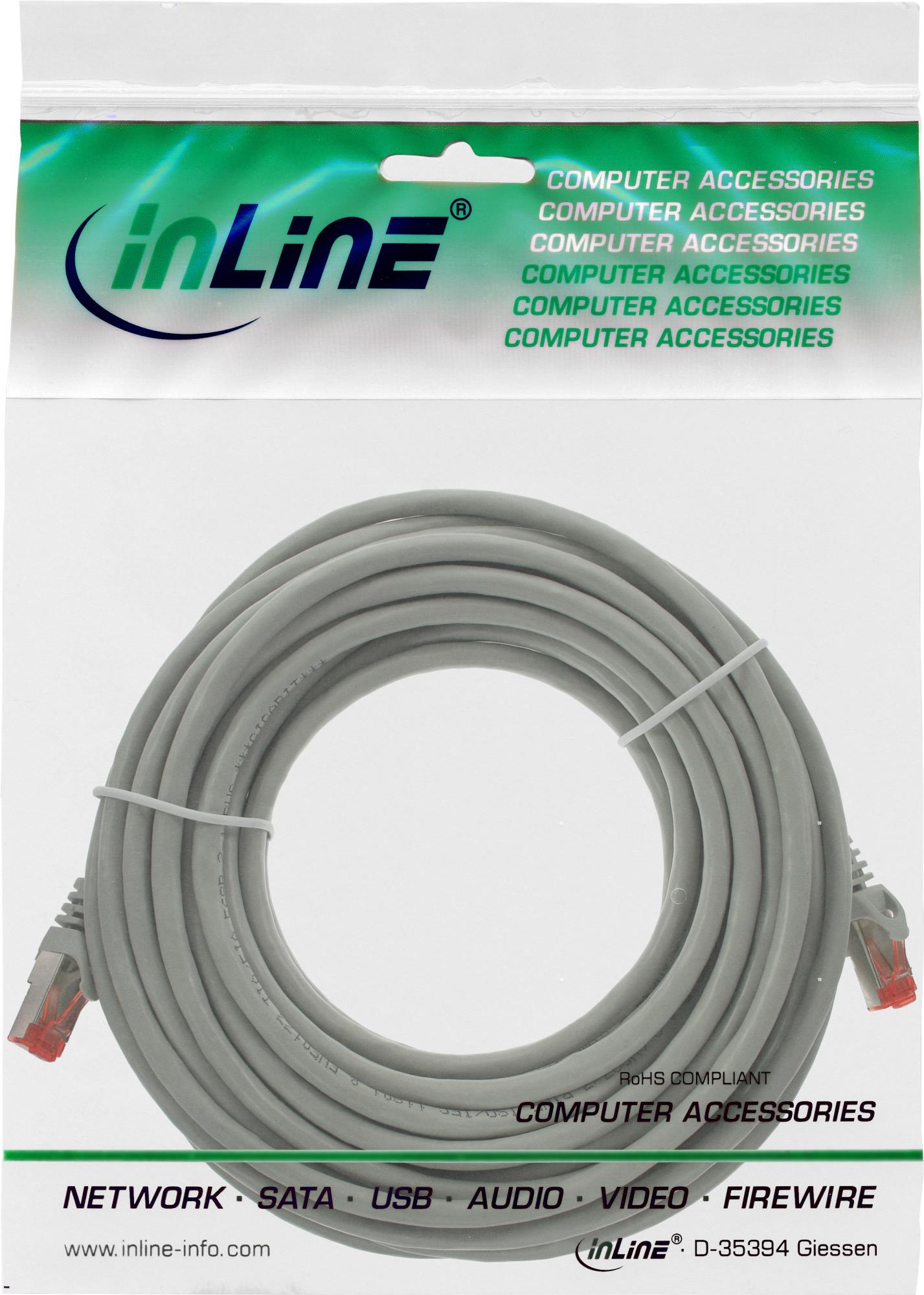 InLine - Patch-Kabel - RJ-45 (M) - RJ-45 (M) - 10,0m - SSTP-Kabel - CAT 6 - gepresst, halogenfrei - Grau (76900)
