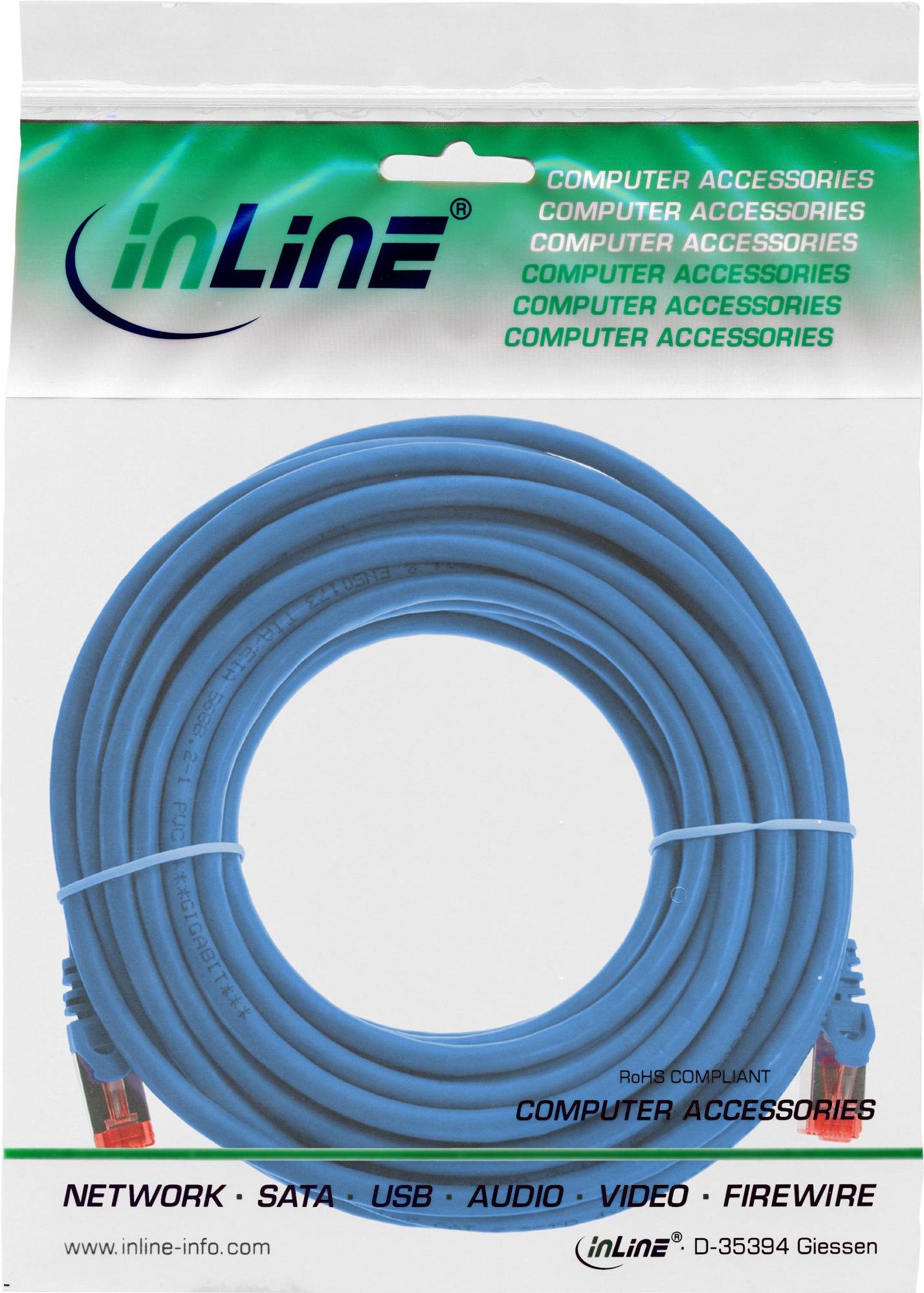 InLine® Patchkabel, S/FTP (PiMf), Cat.6, halogenfrei, blau, 10m (76900B)
