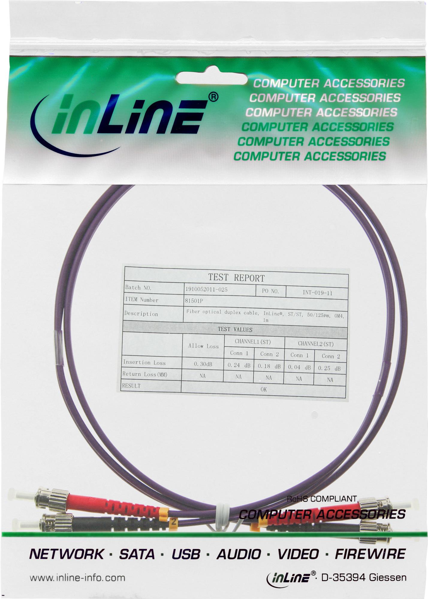 InLine® LWL Duplex Kabel, ST/ST, 50/125µm, OM4, 5m (81505P)