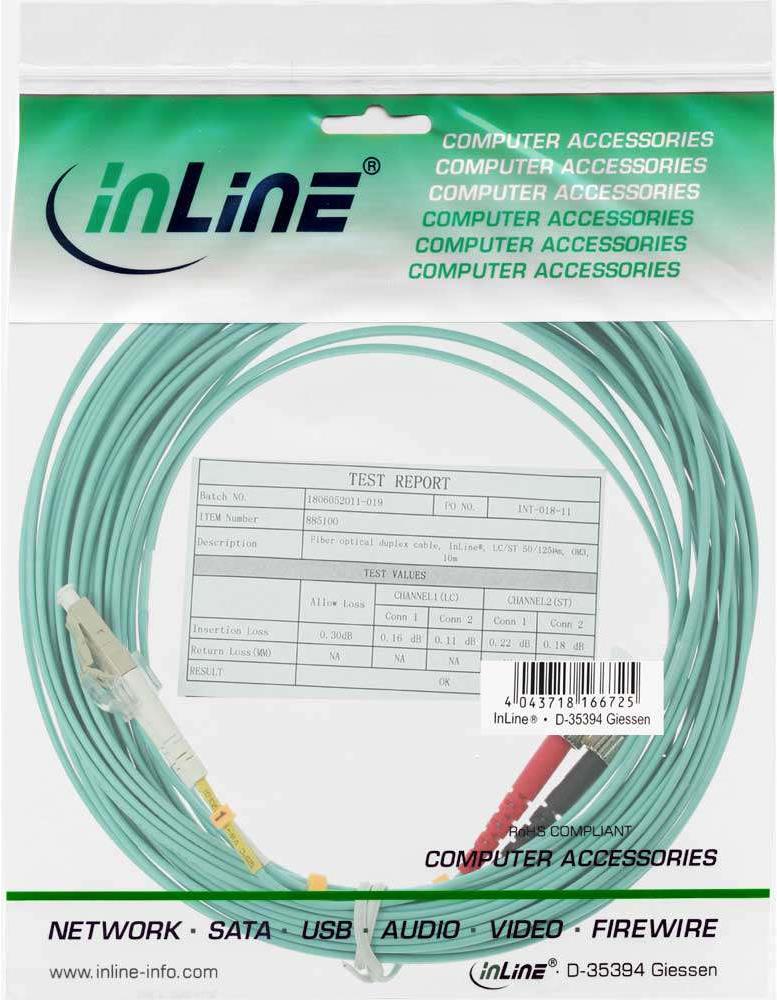 InLine - Patch-Kabel - LC Multi-Mode (M) - bis - ST multi-mode (M) - 7,5m - Glasfaser - 50/125 Mikrometer - OM3 - halogenfrei - Türkis (88507O)