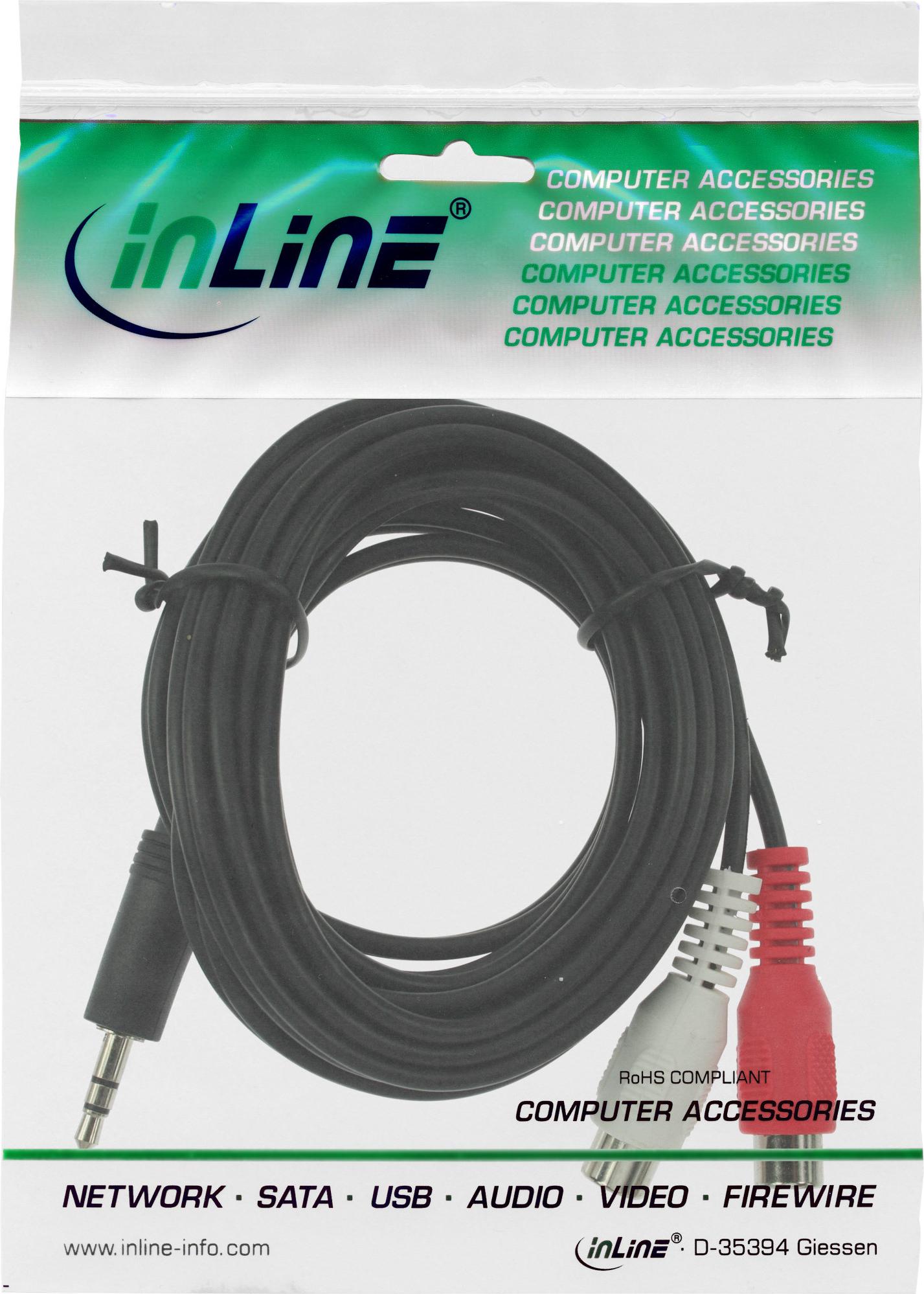 INLINE Klinke/Cinch BU Audio-Kabel 2m Audiokabel 1x 3,5mm Klinke Stecker an 2x Cinch Buchse Laenge 2m (89941)
