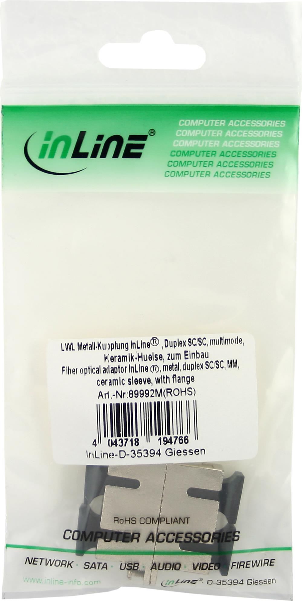 InLine® LWL Metall-Kupplung, Duplex SC/SC, multimode, Keramik-Hülse, zum Einbau (89992M)