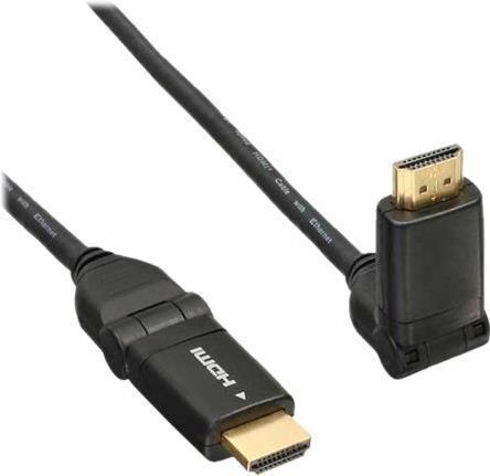 InLine® HDMI Kabel, High Speed HDMI® Cable with Ethernet, Stecker/Stecker, verg. Kontakte, schwarz, flexible Winkelstecker, 3m (17003W)