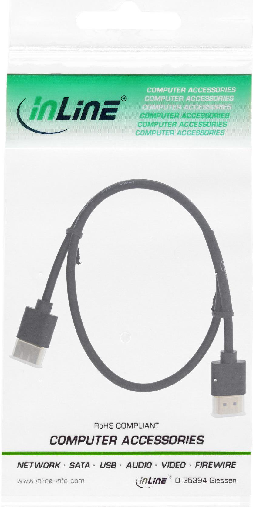 InLine® HDMI Mini Superslim Kabel A an A, High Speed HDMI® Cable with Ethernet, schwarz / gold, 1,5m (17511S)